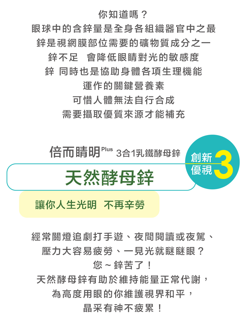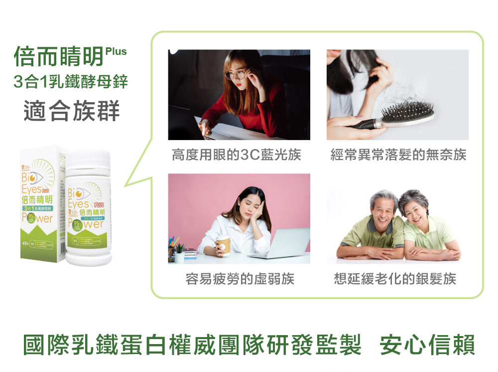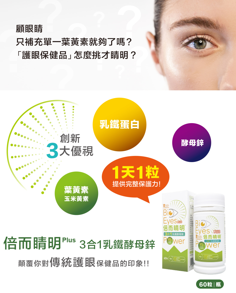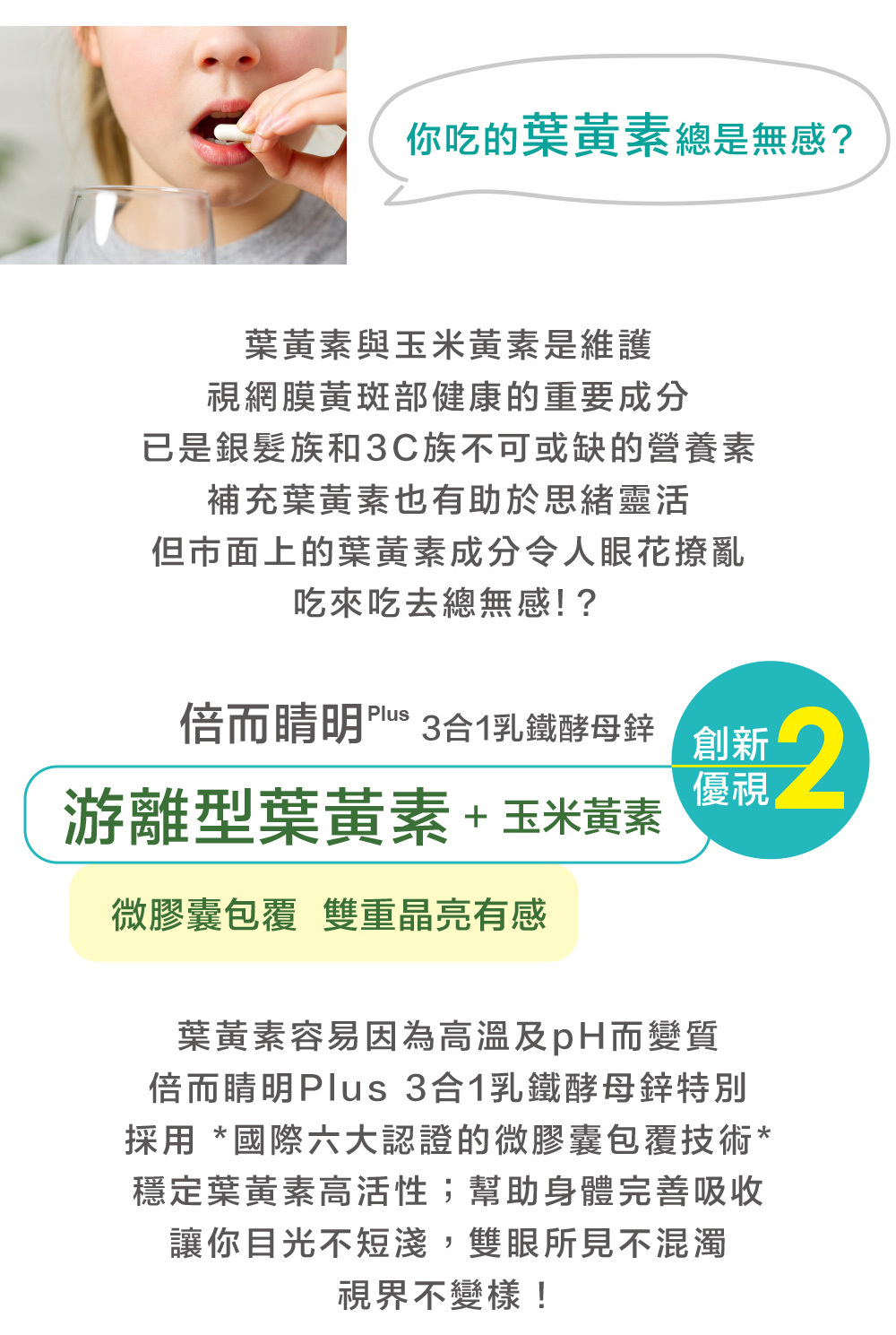 高劑量高純度乳鐵蛋白結合葉黃素與酵母鋅的創新複合護視保健品